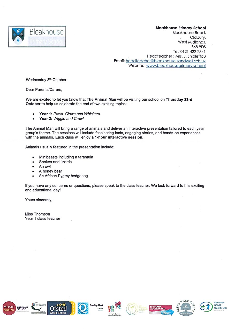Animal Man Visiting Year 1&2 - Thursday 23rd October