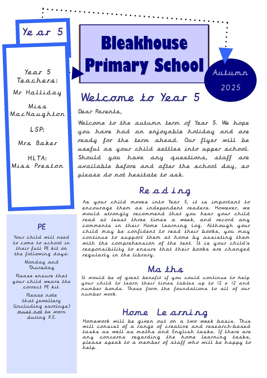 Year 5 will have PE on Mondays and Thursdays.